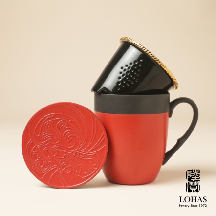 【金喜環蓋杯】一杯一蓋一茶格 手繪金線 雙色工藝