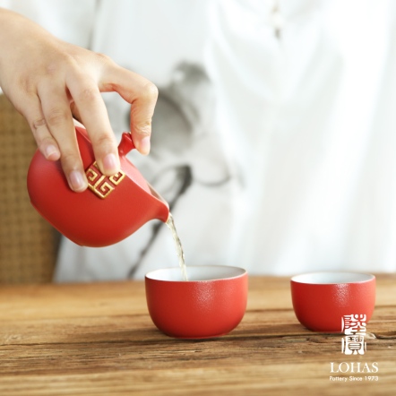 【旋紋旅行組-富貴紅】一壺兩杯 搭配壺袋