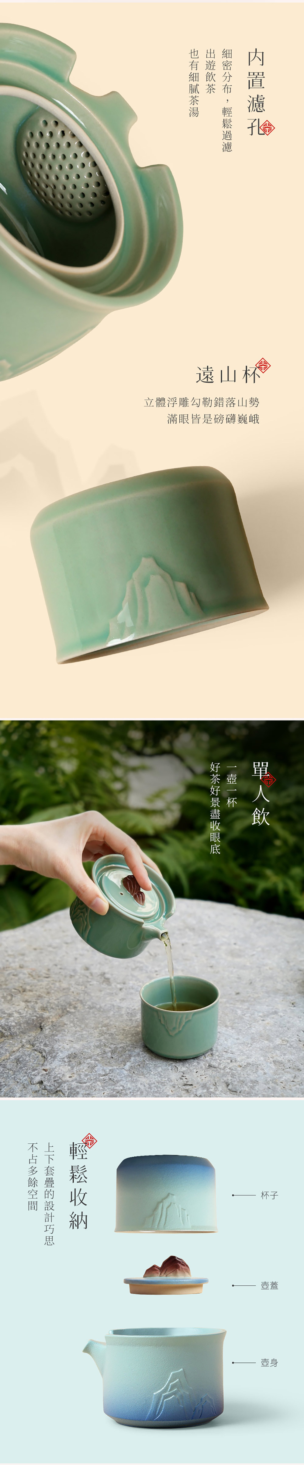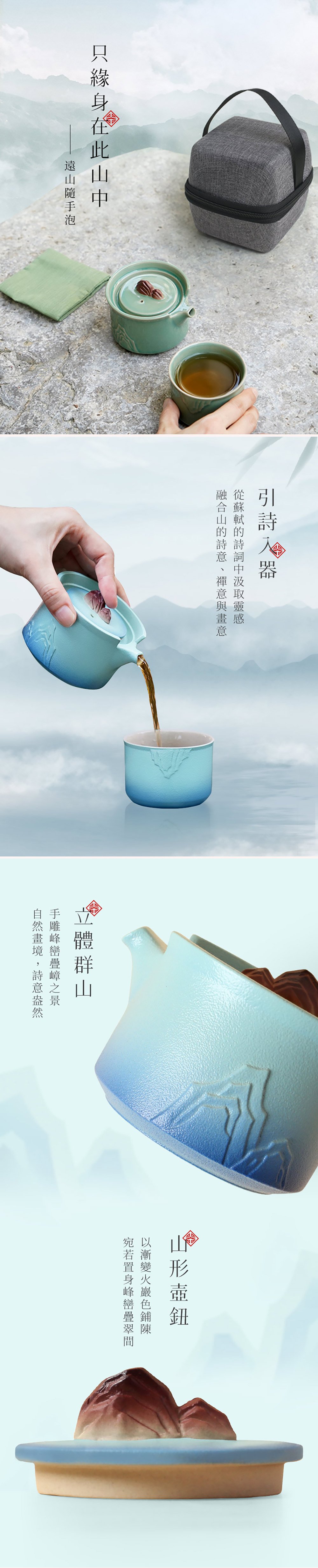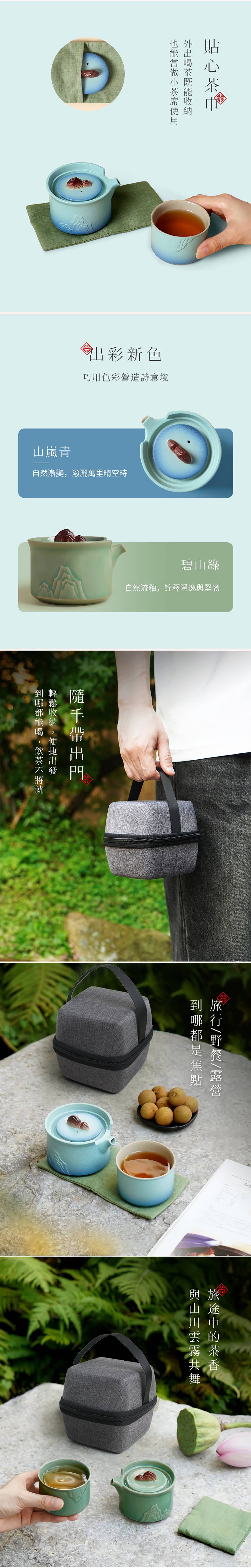 【遠山隨手泡】山嵐青/碧山綠 一壺一杯配茶巾 時尚便攜包