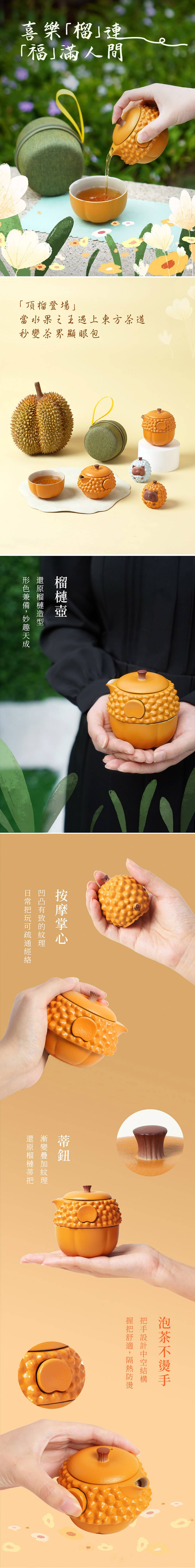 【榴福隨手泡-溫暖黃】榴槤造型壺 x果肉造型杯 ,激盪出茶圈新寵「頂榴」茶具