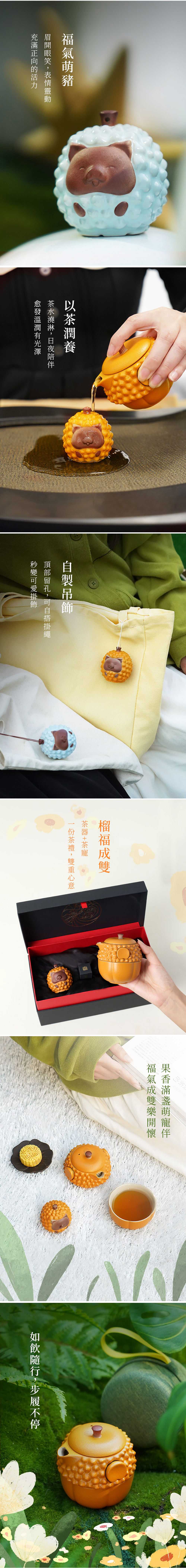 【榴福成雙禮盒-溫暖黃】榴槤造型壺 x果肉造型杯 x招福萌豬茶寵 x精緻收納禮盒