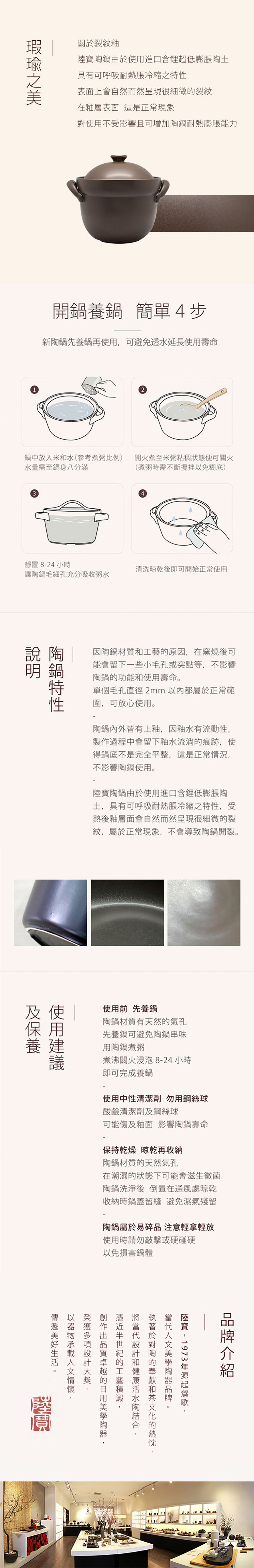 1.第一次使用陶鍋時前,需要先煮白粥養鍋,鎖住毛細孔,避免滲水或串味。養鍋還能讓陶鍋更耐燒並可延長陶鍋的使用壽命。