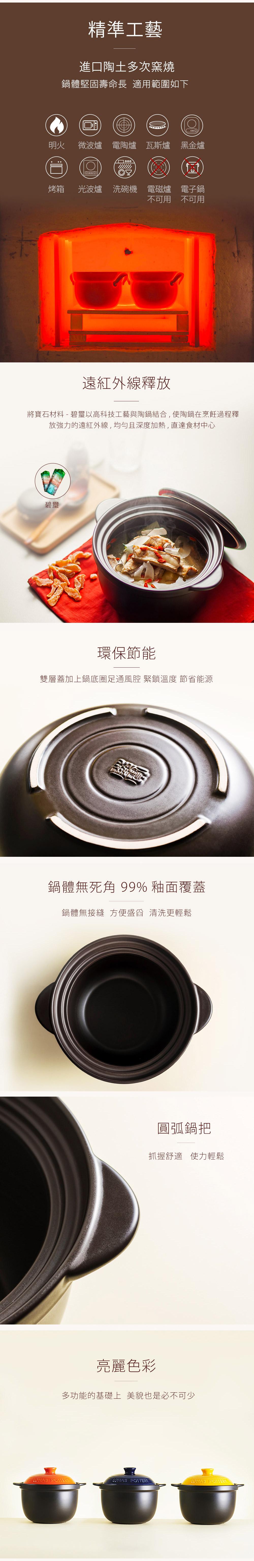 產品材質:進口耐熱陶土、遠紅外線釉層