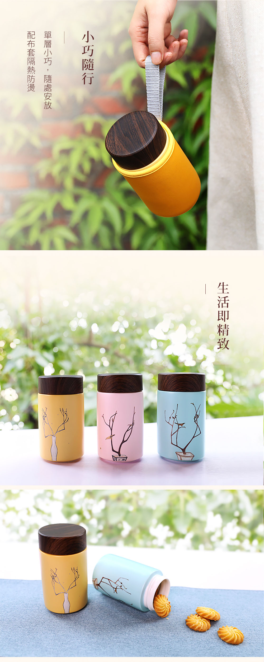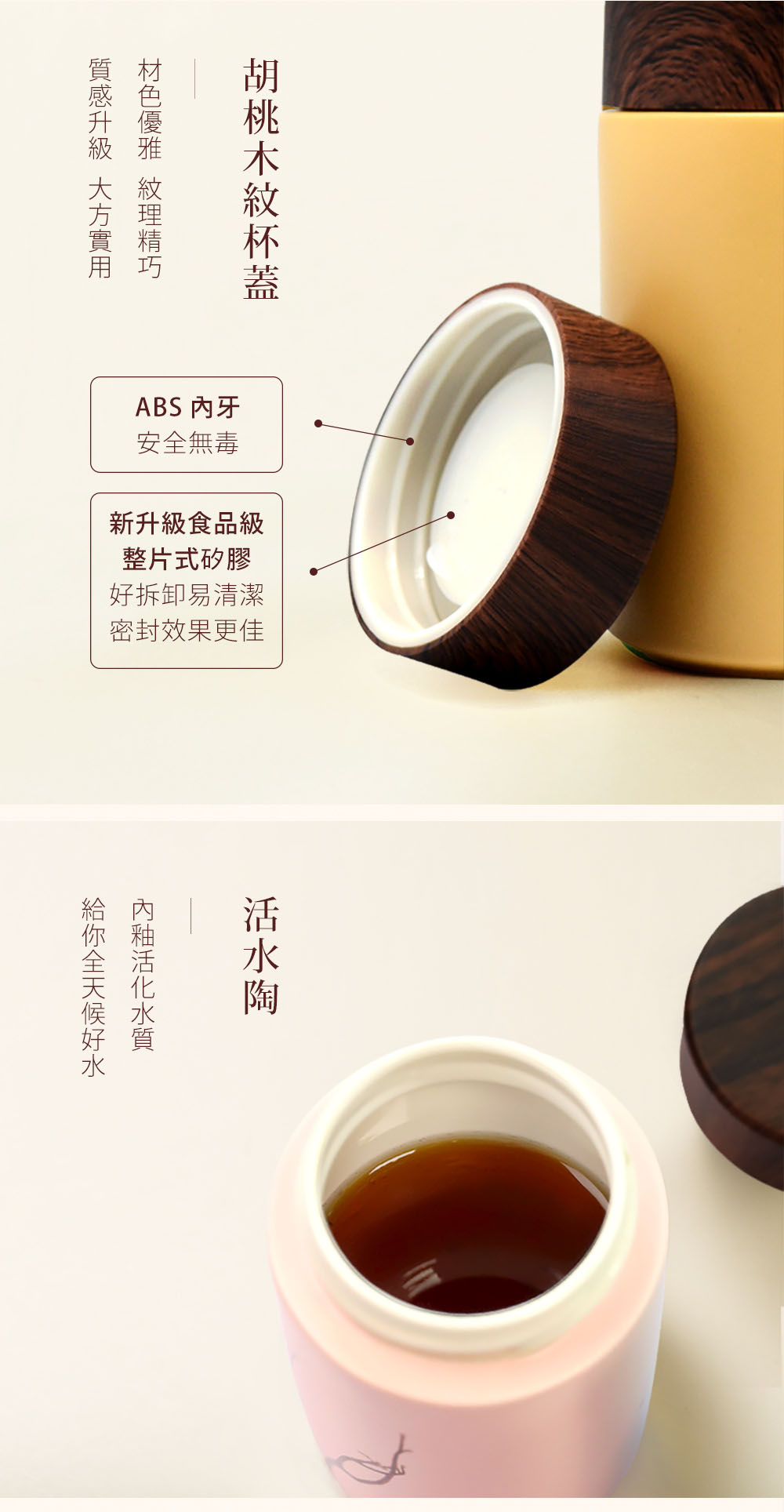胡桃木紋杯蓋精細,附上隨身布套方便攜帶。