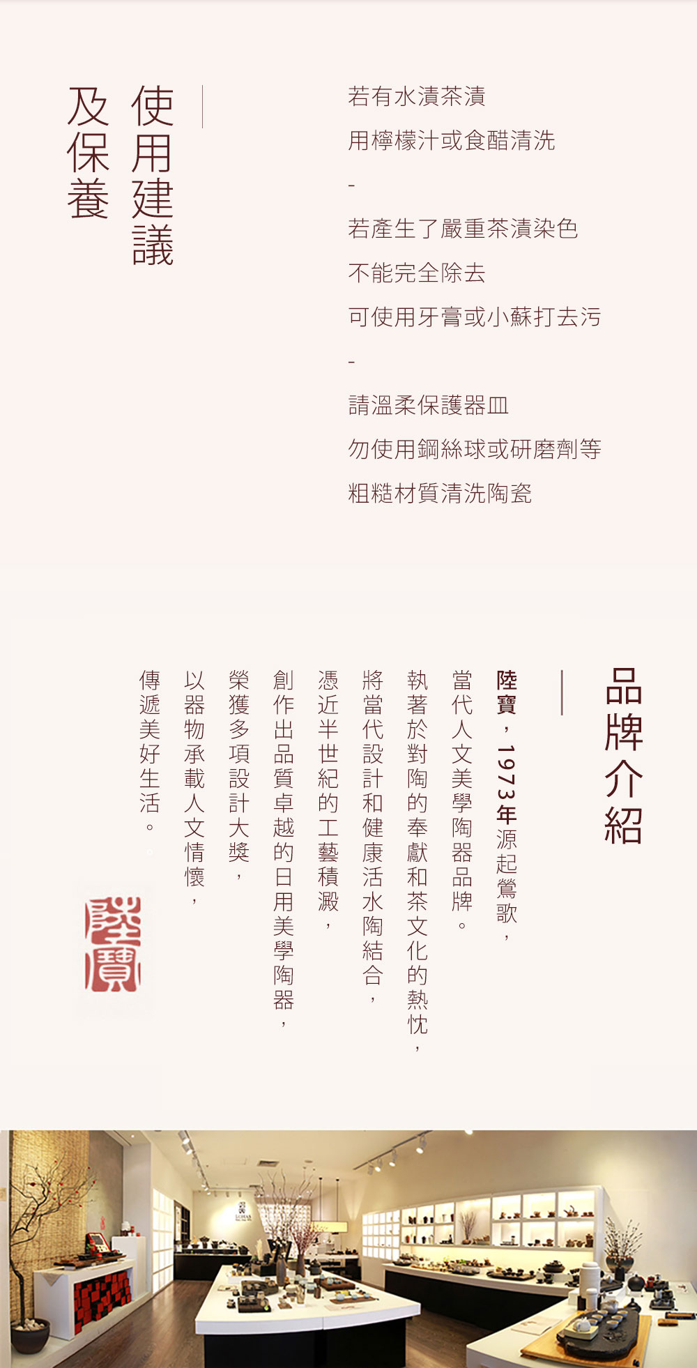 1. 陶器為易碎物品,請避免撞擊或摔落,以延長商品使用壽命。