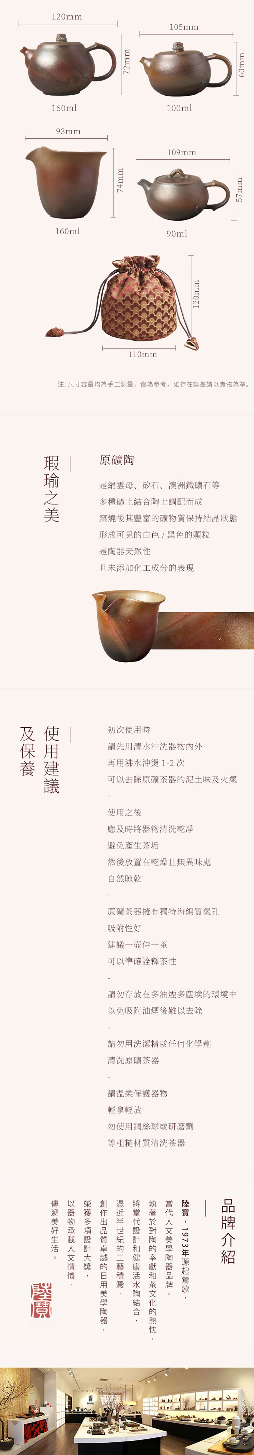 5.使用注意:陶器易碎,請輕拿輕放,勿放入洗碗機或與其他器物碰撞導致破損。