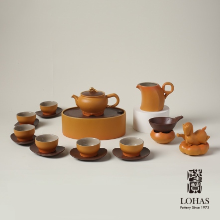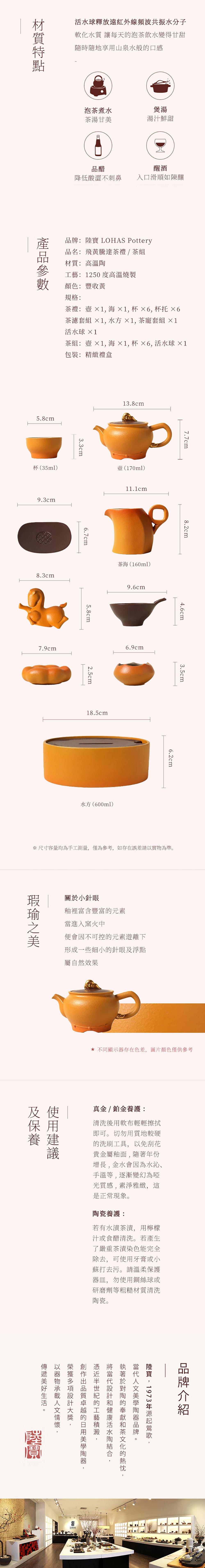 【飛黃騰達茶禮-豐收黃】一壺一海六杯+6杯托+茶濾套組+茶寵+水方 全套茶席