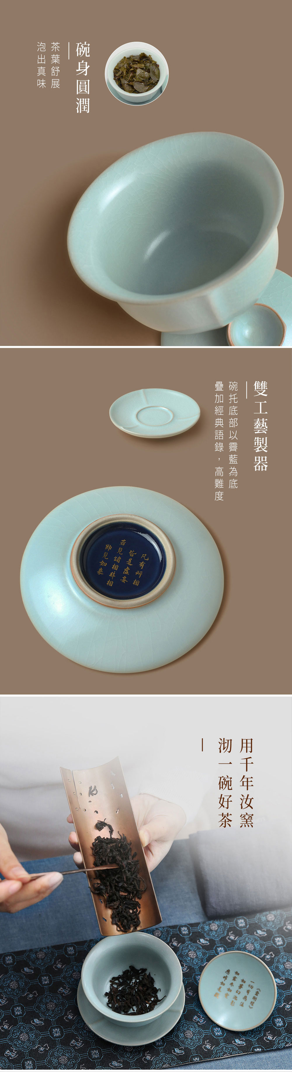 1.汝窯經常使用就能養壺,泡茶時用養壺筆沾茶葉滋潤胚體,一段時間後,紋路就會慢慢顯示出靈性。