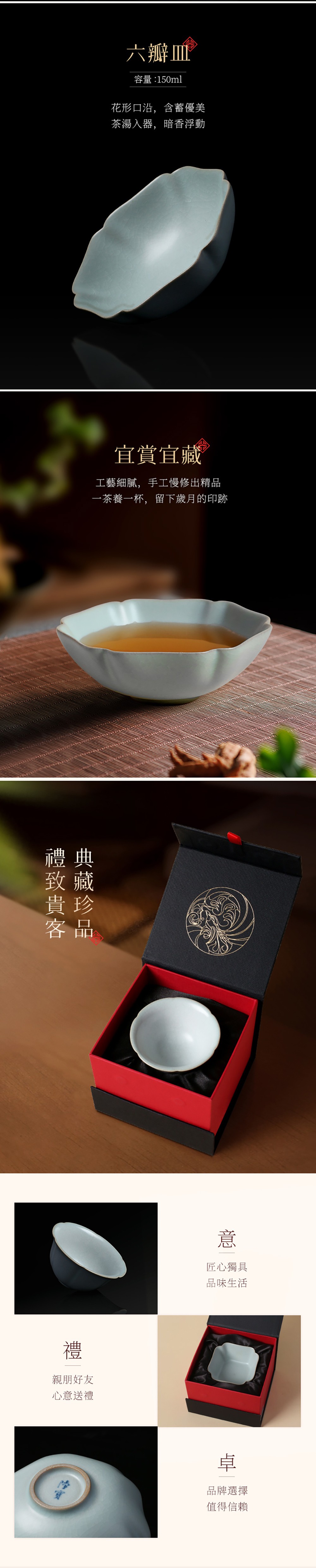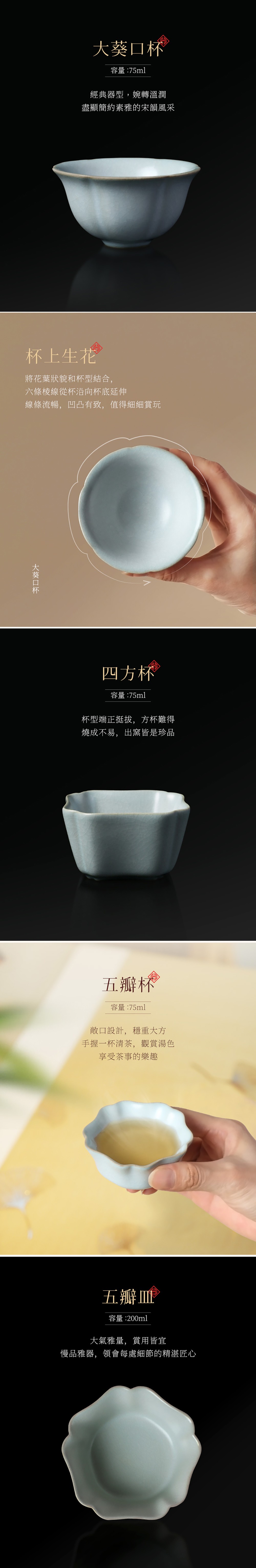 【汝窯 主人杯】四方杯、葵口杯、五瓣杯、六瓣皿
