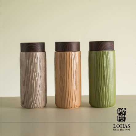 【禪風旋轉隨身杯】330ml 旋紋雙層陶杯